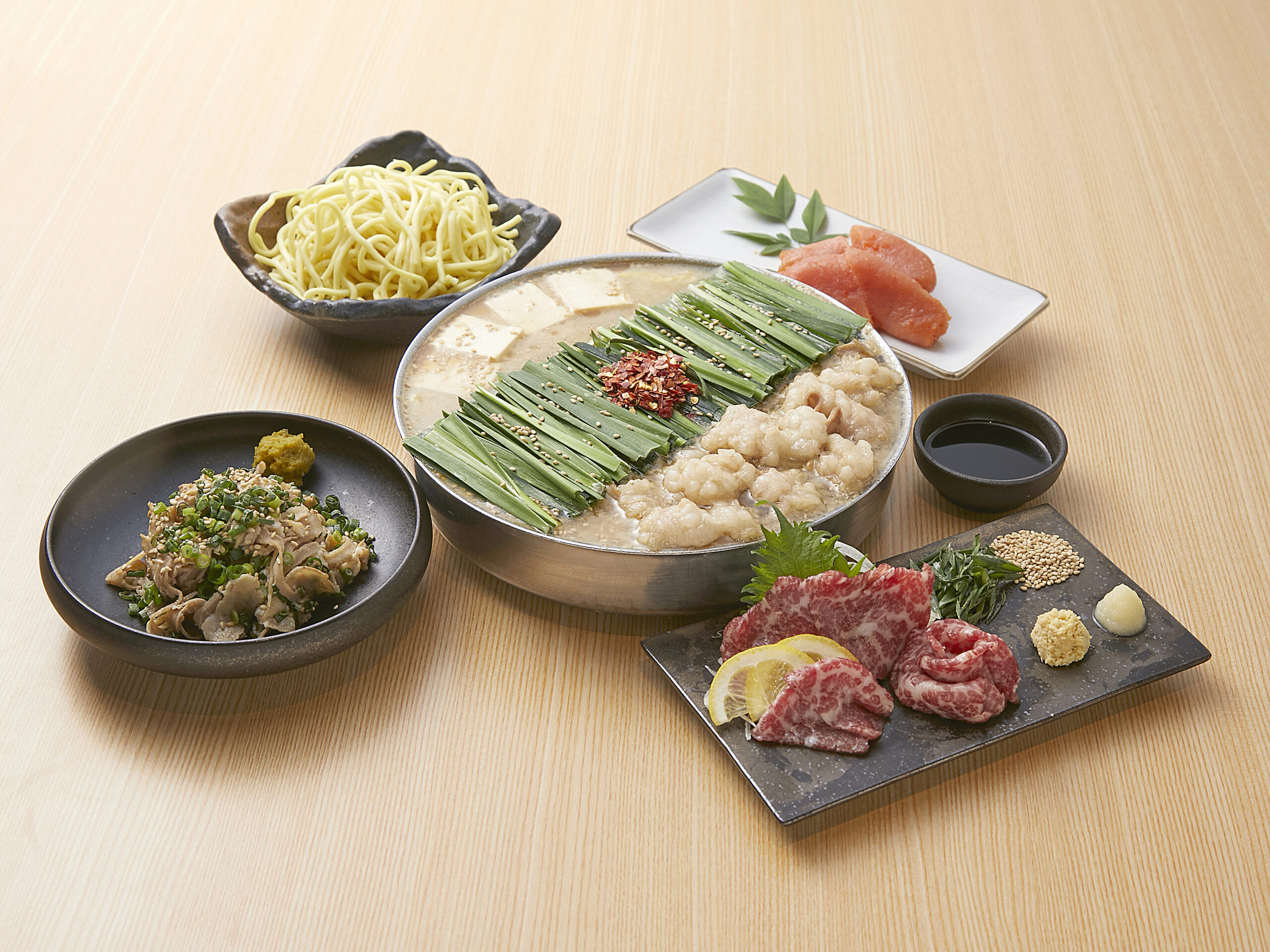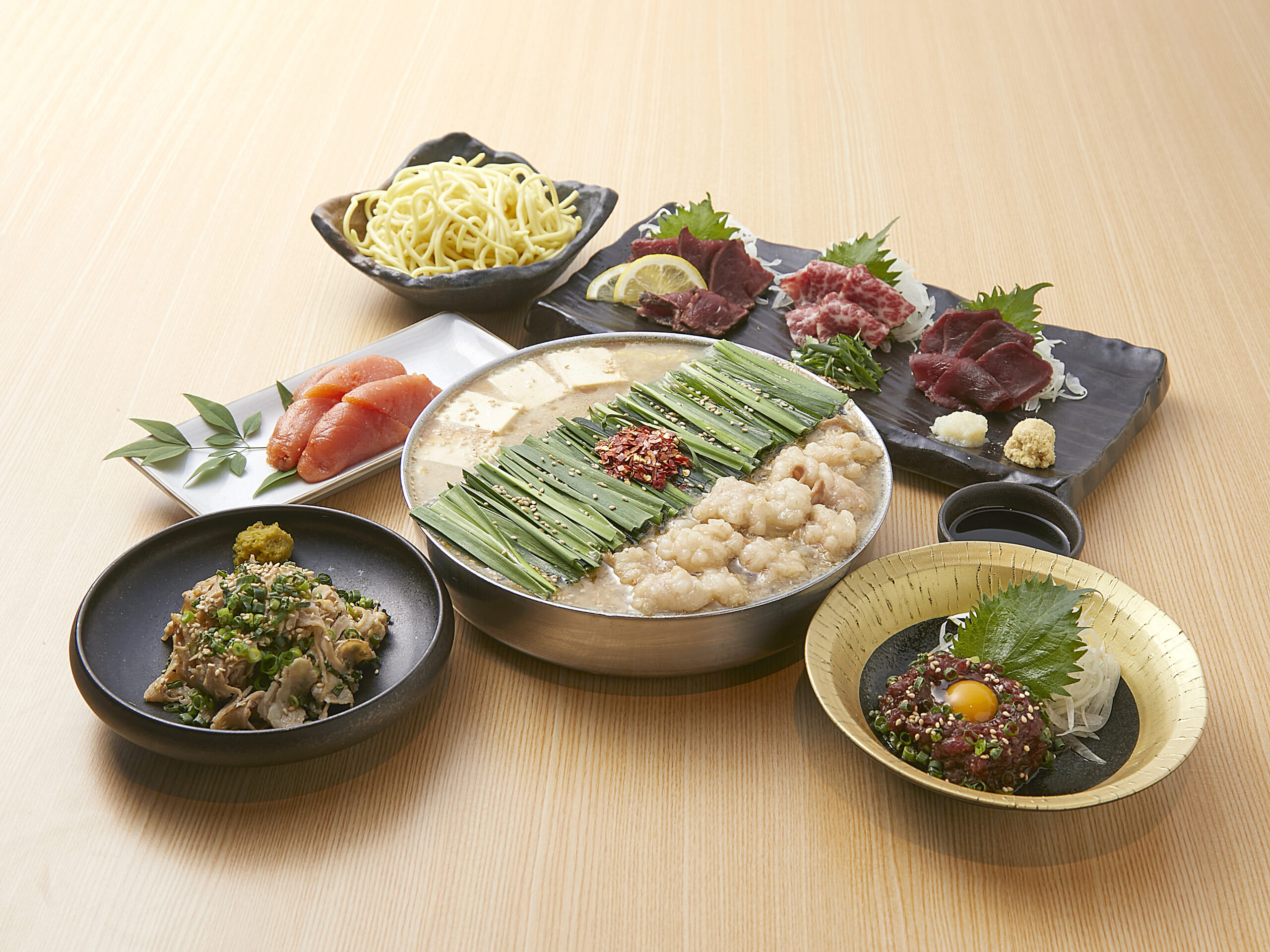 - ・もつ鍋 ・博多明太子 ・ゆず大根 ・馬刺し ・柔らか牛すもつ ・ご飯 or ちゃんぽん麺